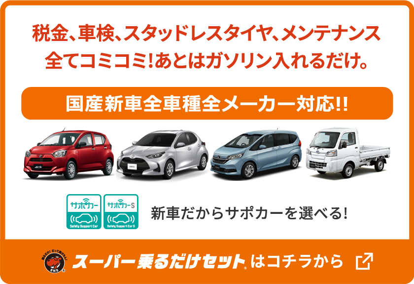 県内でも広がる、月額定額で、新車に乗れる「マイカーリース」。全国で約20年の実績、いちばん選べて、安心・安全の全国の先駆者「スーパー乗るだけセット®」をご説明します!