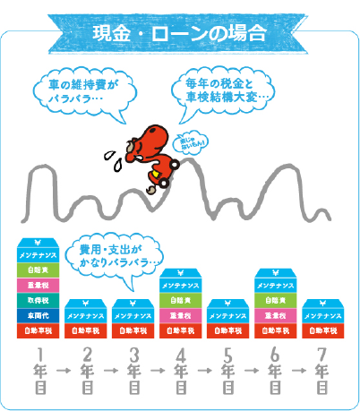 多くの方が、車のお支払い方法は、キャッシュかローンを選ばれているとおもいますが、これらがカバーしてくれるのは購入時にかかるお金のみ。