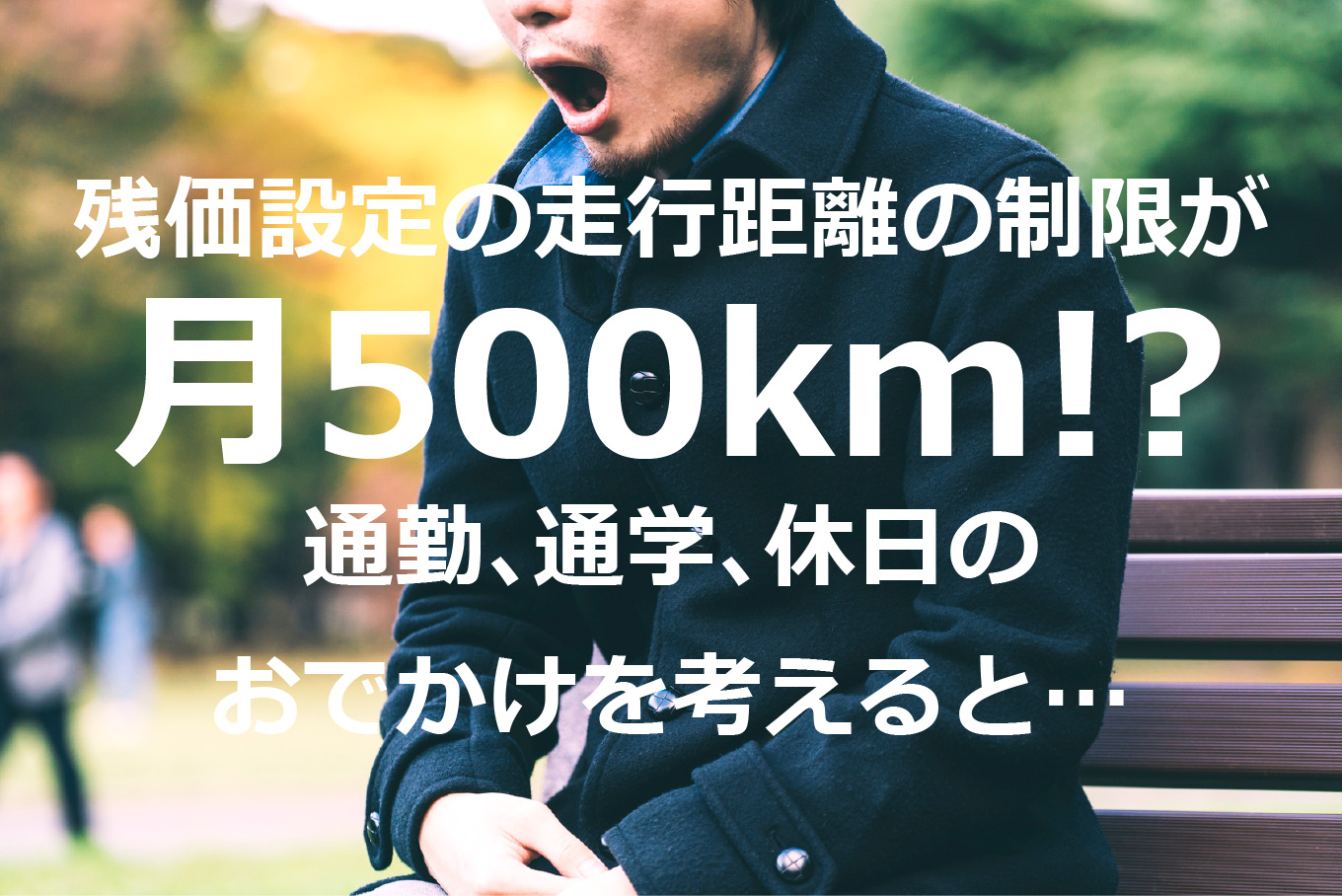つまり、契約時の走行距離などの条件を超える乗り方の場合、「後払い」の価値が減っているので、契約終了後に費用の追加が起こる場合も考えられます。これでは、契約終了後に“急な”出費が起きてしまうことになります。また、走行距離を気にするあまり、制限された生活になるのは、本末転倒なことです…。